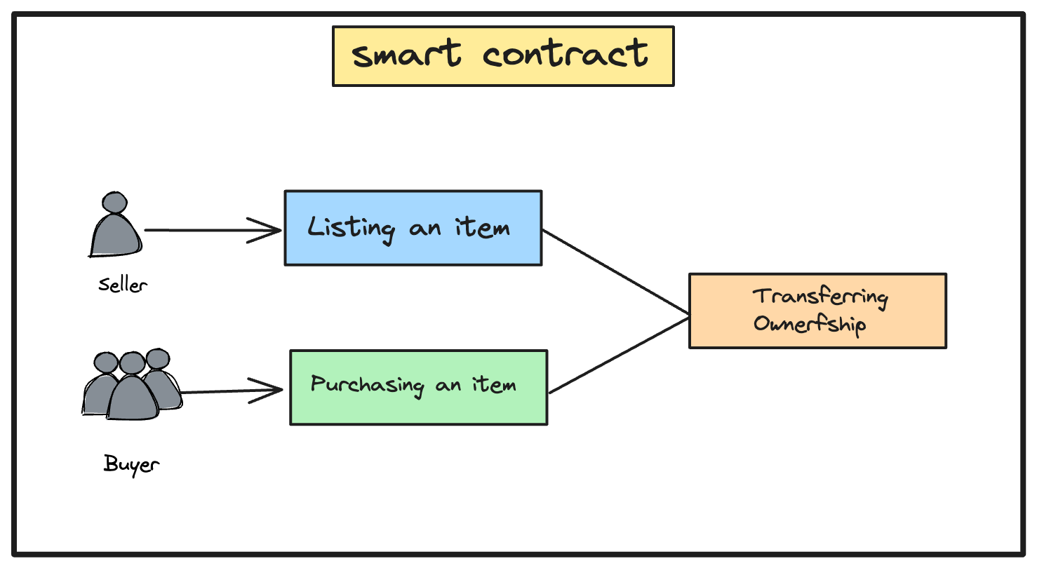 /// @notice A simple marketplace contract for listing, purchasing, and transferring items
